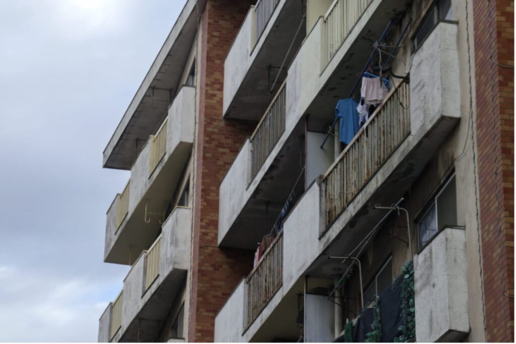 外壁のタイルやコンクリートが経年劣化により落下する危険性がある状態です。